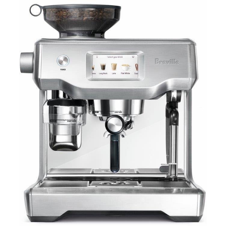 Thoughtful layout for easy access to grinder, portafilter, and water tank